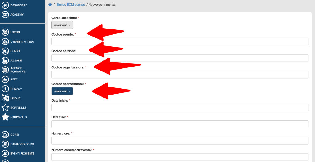 La raccolta dei dati è obbligatoria per la generazione degli attestati, per le comunicazioni ad Agenas e per la storicizzazione delle informazioni legate all’evento stesso.