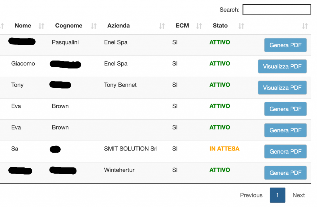 Step 3: Gestione delle iscrizioni Una volta che i partecipanti iniziano a registrarsi, monitora attentamente le iscrizioni attraverso la dashboard di Learning Objects. Puoi visualizzare i dati in tempo reale e scaricare il pdf della registrazione per ogni evento.